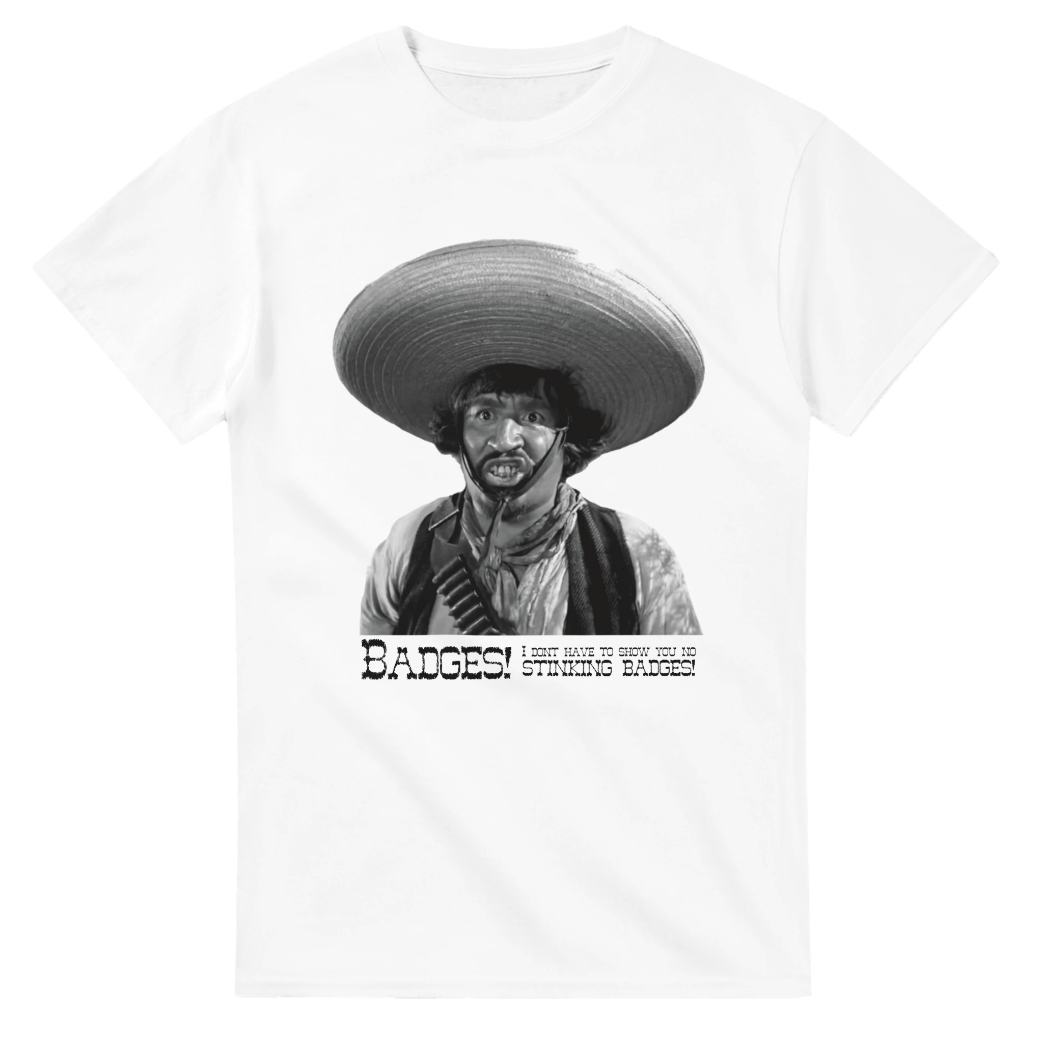 If you recognise this classic quote: “Badges! I don’t have to show you no stinking badges!”, then, like my wifes father, you are probably a fan of “The Treasure of the Sierra Madre” starring the legendary Humphrey Bogart. Available in multiple sizes and colours.